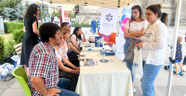 Adaylarının üniversite hakkında birinci elden bilgi sahibi olmaları için çevre illerde organize edilen Tanıtım Günleri etkinliklerine de katılan ETÜ; bu kapsamda Iğdır, Bitlis ve Van’da da stantlar açarak öğrenci ve aileleriyle buluştu. Ziyaretçilerine hem Erzurum’un tarihi, kültürel ve sosyal yaşamından bilgiler aktaran hem de üniversitenin akademik ve bilimsel faaliyetlerinden bahseden stant görevlileri; bölümlerin taban puanları, fiziki imkânları ve ders müfredatları hakkında bilgi paylaşımında bulundu. ETÜ’den mezun olan öğrencilerin, donanımlı bireyler olarak ülkenin birçok noktasında kolaylıkla iş bulabildiklerini aktaran uzmanlar, tercih yapacak öğrencileri ETÜ ayrıcalığı yaşamaya davet etti.