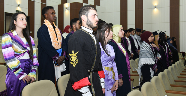 A graduation ceremony was held for international students studying at Erzurum Technical University (ETU) Turkish Language Teaching Application and Research Center (TÖMER).