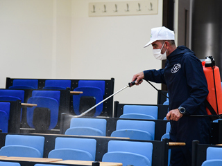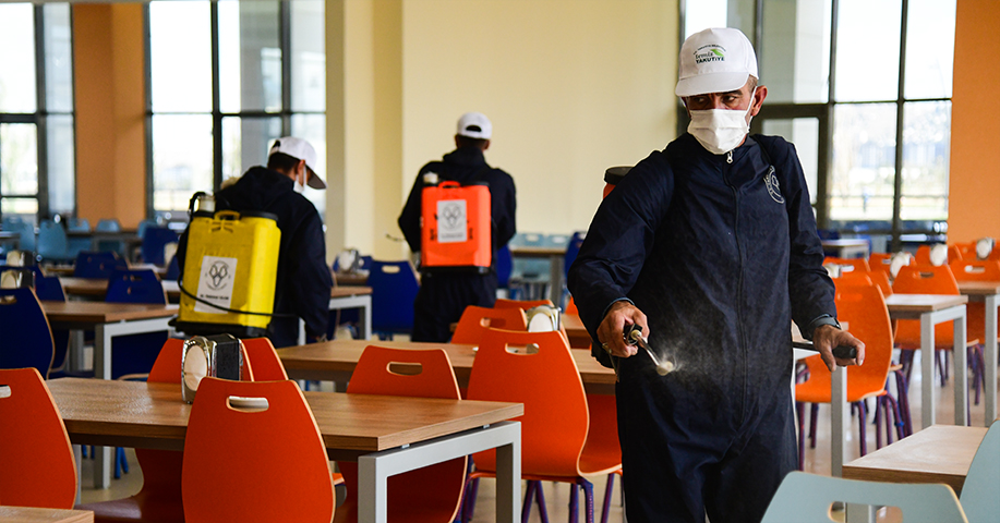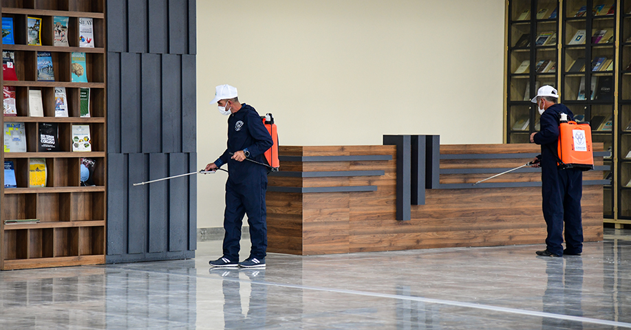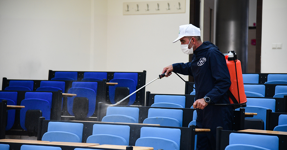 Covid-19 pandemisi nedeniyle bir buçuk yıldır ara verilen yüz yüze eğitime 27 Eylül itibariyle başlayacak olan ETÜ, öğrencilerin ve personelin sıklıkla kullandığı alanlarda salgın tedbirlerini arttırdı. Bu kapsamda Erzurum Yakutiye Belediyesi dezenfektan ekibinin desteğiyle derslikler, laboratuvarlar, kütüphaneler, kantinler, yemekhaneler ve dinlenme salonları gibi toplu kullanım alanları dezenfekte edilerek insan sağlığına uygun hale getirildi.