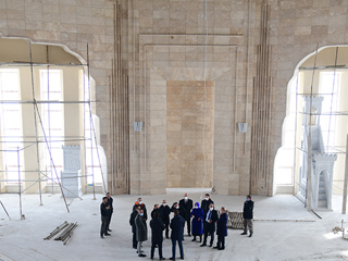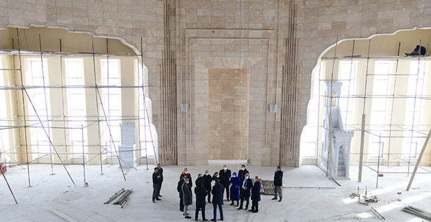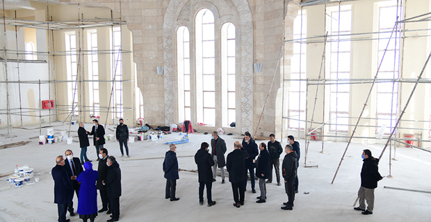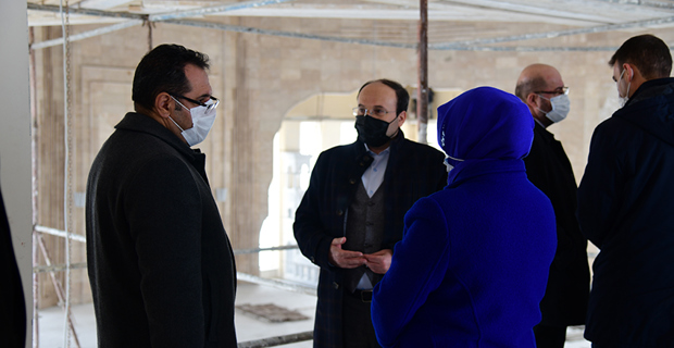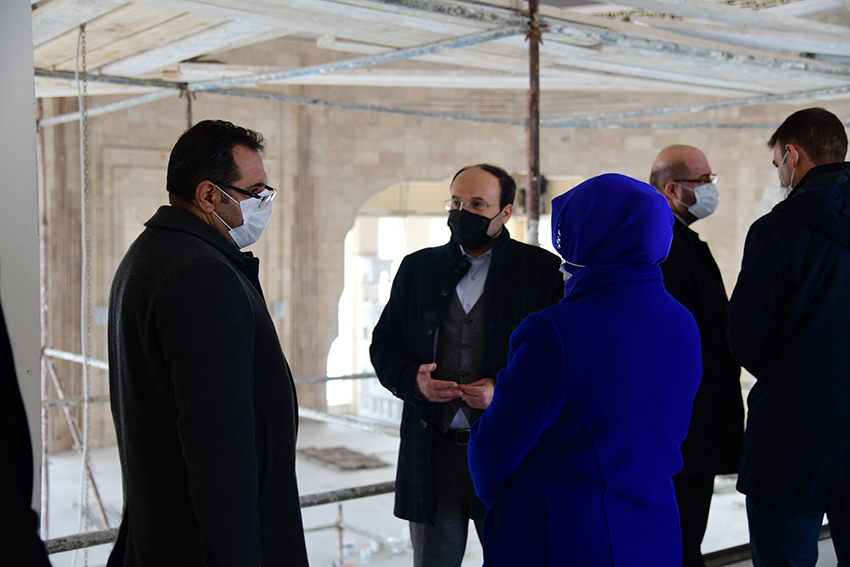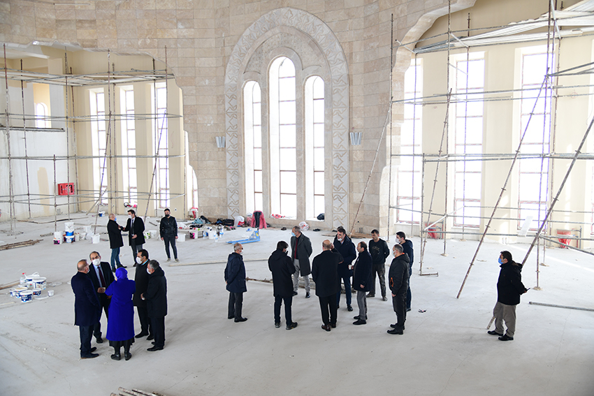 Yapımı devam eden camide incelemelerde bulunan Prof. Dr. Bülent Çakmak’a Rektör Yardımcıları Prof. Dr. Birol Soysal, Prof. Dr. İrfan Kaymaz ve Genel Sekreter Doç. Dr. Tuba Yetim eşlik etti.
