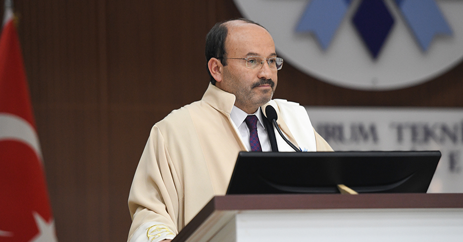 Törenin açılışında konuşan Rektör Çakmak, akademik başarının ve emeğin teşvik edilmesinin önemine dikkat çekerek: “Bugün burada, yalnızca geçmişin başarılarını kutlamakla kalmıyor, aynı zamanda geleceğe dair umutlarımızı ve ideallerimizi de yeniden yeşertiyoruz. Akademik dünyada emek, sabır ve kararlılıkla örülmüş her başarı hikâyesi, toplumun ilerlemesine katkı sunan çok kıymetli bir yapı taşıdır. Bu vesileyle, üniversitemizin akademik ve idari kadrolarında görev yapan, özverili çalışmalarıyla bilim, eğitim ve hizmet alanlarında fark yaratan tüm mensuplarımıza gönülden teşekkür ediyorum. Bugün ödül alacak olan değerli hocalarımızı ve çalışma arkadaşlarımızı yürekten kutluyorum. Başarılarınız yalnızca kurumumuzu değil, ülkemizi de yücelten bir değere sahiptir. Bugünkü törenimizin bir diğer önemli ve gurur verici boyutu ise, ülkemize ve insanlığa yaptığı katkılarla örnek bir duruş sergileyen Mürsel Meral’e fahri doktora unvanı takdim edecek olmamızdır. Kendi alanında göstermiş olduğu liderlik, toplumsal fayda odaklı projelere verdiği destek ve eğitime duyduğu yüksek hassasiyet ile bizleri etkileyen ve ilham veren Mürsel Meral Beyefendiye aramıza hoş geldiniz demekten büyük bir mutluluk duyuyorum. Üniversiteler, sadece bilgi üreten değil, aynı zamanda değer üreten, insan yetiştiren ve topluma yön veren kurumlardır. Bugün burada ödüllendirdiğimiz her bir başarı, bu büyük misyonun ne denli ciddi şekilde benimsendiğinin ve hayata geçirildiğinin birer göstergesidir. Bu anlamlı günün, bizleri daha büyük hedeflere taşımasını temenni ediyor; emeği geçen herkese en içten teşekkürlerimi sunuyorum” diye konuştu.