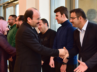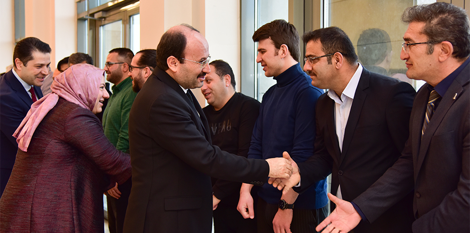 Rektör Çakmak konuşmasının ardından personel ile tek tek bayramlaşarak bir süre sohbet etti.