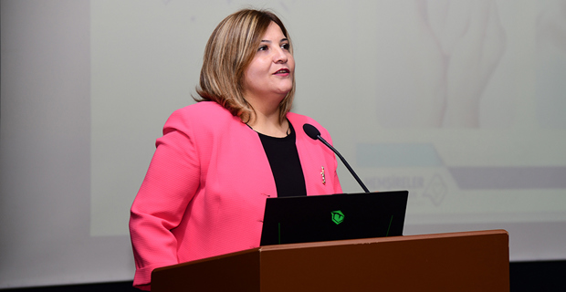 Konferansın açılış konuşması yapmak üzere kürsüye çıkan Prof. Dr. Elanur Yılmaz Karabulutlu, hemşirelerin toplum sağlığına verdiği ve verebileceği önemli katkıları herkese anımsatmak için kutlanmakta olduğunu ifade ederek “Hemşirelik mesleği toplumsal ihtiyaçlardan doğan, insan sevgisini, özveri, sabır ve hoşgörü kavramlarını içinde barındıran çok yönlü bir meslektir. Hemşireler, din, dil, ırk ayrımı gözetmeksizin “Herkes için Sağlık” ilkesini benimseyen, birey, aile ve topluma sağlık hizmeti sunmada ekibin en etkin rol oynayan üyesi olma konumundadır. Tarihi sürece baktığımızda, hemşirelerin salgınla mücadelelerde ön saflarda yer aldığı görülmektedir. Modern hemşireliğin başlangıcından bu yana hemşireler olağanüstü durumlarda değerlendirme yapma, öncelikleri belirleme, iş birliğini sağlama ve bakım yönetme rollerini üstlenmiştir. Ülkemizde de COVID-19’la mücadelede, hemşireler hem ön planda yer almış hem de sağlık sistemini ayakta tutan temel bileşenlerden biri olmuştur. Bu süreçte 7 gün, 24 saat hastalarla yüz yüze ve nefes nefese yüksek risk altında çalışmışlardır. Bu vesileyle ülkemizin her köşesinde insan hayatının kutsallığından ödün vermeksizin sonsuz sabır, her türlü özveri, gayret ve sevgi ile mesleğini icra etmeye çalışan tüm meslektaşlarımın ve hemşire adayı sevgili öğrencilerimizin "Hemşireler Gününü" kutlar, başarı ve mutluluklar dilerim” şeklinde konuştu.