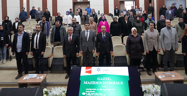 Held at the Prof. Dr. Muammer Yaylalı Conference Hall to discuss the historical and contemporary events in Gaza, the panel was attended by ETU Rector Prof. Dr. Bulent Cakmak, Vice Rectors Prof. Dr. Ali Fatih Yetim and Prof. Dr. Naim Urkmez, Deans, Institute Directors, Erzurum Metropolitan Municipality Culture and Social Affairs Department Head Ergun Engin, academics, and numerous students.