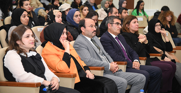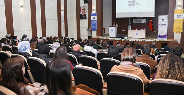 Erzurum Metropolitan Municipality Deputy Mayor Hüseyin Koçan, Vice Rector Prof. Dr. Murat Küçükuğurlu, General Secretary Assoc. Prof. Tuba Yetim, Erzurum Family and Social Provincial Director Cemil İlbaş, Women's Studies Application and Research Center (EKAUM) Director Emel Zorluoğlu Akbey, Erzurum Violence Prevention and Monitoring Center (ŞÖNİM) Director Şeyma Bingöl in addition to Rector Prof. Dr. Bülent Çakmak, and many university members and students attended to the event held at the Prof. Dr. Muammer Yaylalı Conference Hall which is hosted by ETU.