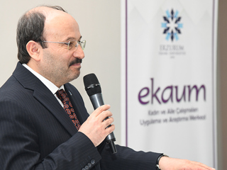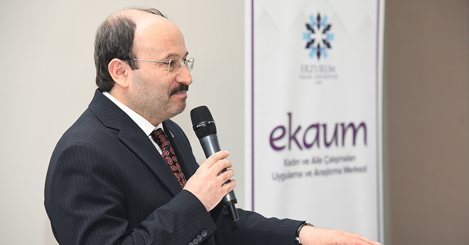Programda konuşan Rektör Çakmak ise dünyada yaşanan şiddet olaylarına dikkat çekerek: “Konuşmama dikkatimi çeken bir Kadın Dayanışma ve Demokrasi Derneği (KADEM) çalışanının ifadeleriyle başlamak istiyorum. “Bizler kadın ve erkeğin bir bütünün 2 eşit yarısı olduğuna inanan ilk gelenekten geliyoruz cinsiyetler arası adaleti şiar edinen bir dinin mensupları olarak kadın ve erkeğin karşılıklı adalet ve hakkaniyet içinde yeryüzünü birlikte imar edeceğine inanıyor ve bunun için çabalıyoruz” Bu sözler günün özeti olabilecek niteliktedir. Malumunuz olduğu üzere insan, yaratıcının yarattığı en şerefli varlıktır. Bizler nihayetinde bu dünyayı kadın ve erkek olarak birlikte imar etmekle mükellefiz. Çünkü kadın ve erkek eşit haklara sahiptir. Kadının dikkate alınmadığı bir toplum aklın yarısından mahrum kalacaktır. Bu durum toplumsal gelişmenin ve ilerlemenin önündeki en büyük engeldir. Kadın ve erkeğin birlikte bu toplumu inşa etmesi, inşa sürecinde her birinin kendi sorumluluk ve yetenekleri ölçüsünde katkı sunması oldukça kıymetli değerlidir. Bu vesileyle 8 Mart Dünya Kadınlar Gününü tebrik ediyorum” şeklinde konuştu.