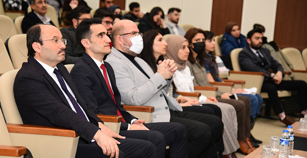 Erzurum Yakutiye Kaymakamı Murat Öztürk’ün konuşmacı olarak yer aldığı programa ETÜ Rektörü Prof. Dr. Bülent Çakmak ve Rektör Yardımcısı Prof. Dr. Birol Soysal ile İktisadi ve İdari Bilimler Fakültesinde öğrenim gören çok sayıda öğrenci katıldı.