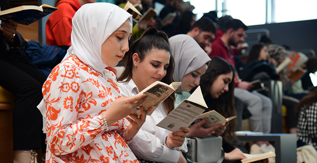 Kütüphane ve Dökümantasyon Daire Başkanlığı ile öğrenci topluluklarından Oku/Yorum Kulübünün iş birliğiyle Merkezi Kütüphanede düzenlenen etkinliğe ETÜ Rektörü Prof. Dr. Bülent Çakmak’ın yanı sıra Yakutiye Gençlik Merkezi Müdürü Zülküf Yılmaz, Kütüphane ve Dökümantasyon Daire Başkanı Ali Fuat Açıkgöz ve çok sayıda personel ile öğrenci katıldı.