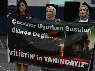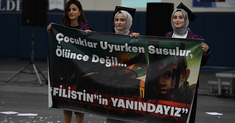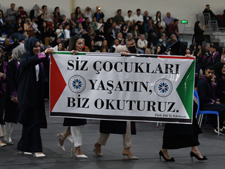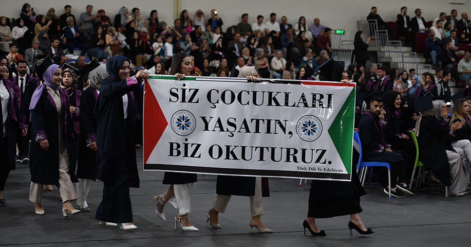 Konuşmasında Gazze’de yaşanan olaylara değinen Rektör Çakmak, insanların acımasızca katledildiğini ifade ederek: “On binlerce masum insan çocuk, kadın ve yaşlı demeden tüm dünyanın gözü önünde katlediliyor. Öte yandan yüreği insan sevgisi ile dolu olanlar tepkilerini her şekilde ifade ediyor. Bu noktada biz ne yapabiliriz sorusunun cevabı iyiliği çoğaltmak olmalıdır. Dünyada kötülüğü yayanlara karşı evimizde, işimizde ve beşeri ilişkilerimizde adaleti tesis edecek, evrene iyilik dalgalarını gönderecek ve galip geleceğiz. Yangına su taşıyan karınca misali biz de kendi gücümüz ölçüsünde her daim iyilik için mücadele edeceğiz. İşini en iyi şekilde yapan, tüm canlılara karşı merhametli ve şefkatli insanlar olacağız. Karanlığı, yaydığımız iyilik ışığıyla yok edeceğiz. Hayatın gayesi sadece iyi bir iş sahibi olmak, para kazanmak, kariyer yapmak, servet sahibi olmak değildir. Aynı zamanda değer sahibi olmak, ilkeli olmak ve insanlığa faydalı bireyler olmaktır. Sözlerimi bu duygu ve düşüncelerle tamamlarken sizleri mezuniyetinizden dolayı tekrar tebrik ediyor, bundan sonraki yaşamınızda yolunuzun ve bahtınızın açık olmasını temenni ediyorum” diye konuştu.