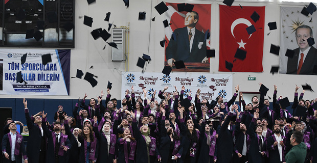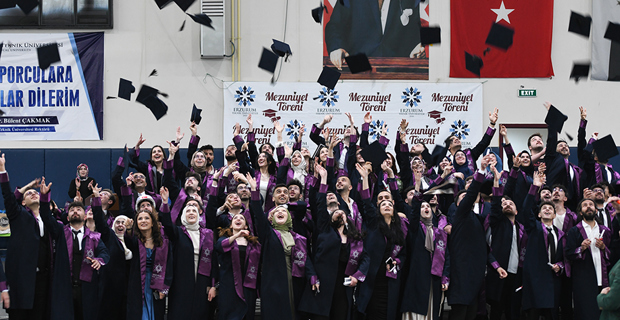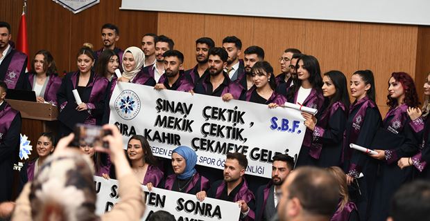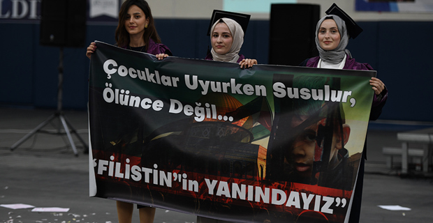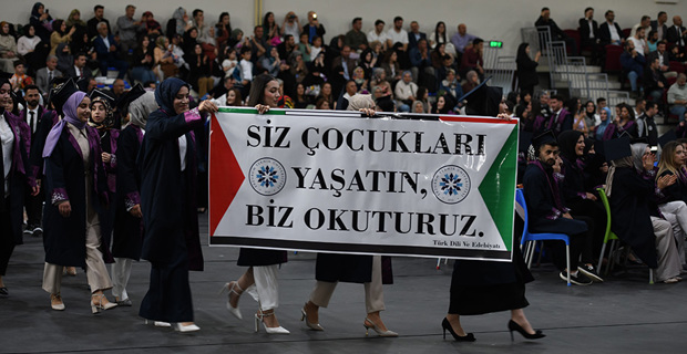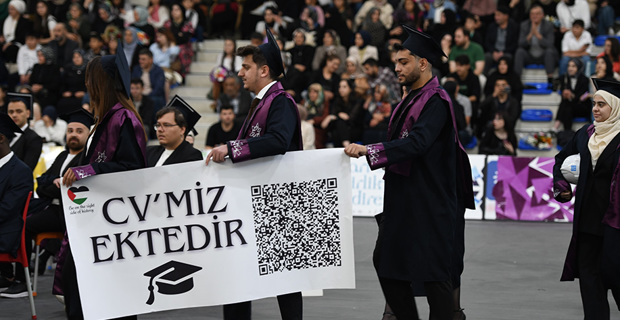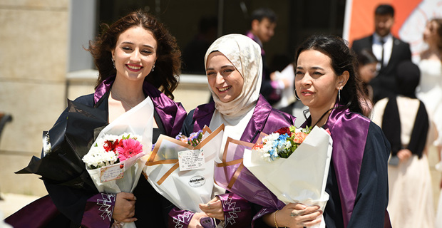 Addressing the events in Gaza in his speech, Rector Cakmak expressed that people are being mercilessly killed: "Tens of thousands of innocent people, regardless of being children, women, or the elderly, are being killed in front of the whole world. On the other hand, those with hearts full of love for humanity express their reactions in every way possible. At this point, the answer to the question of what we can do should be to increase goodness. Against those spreading evil in the world, we will establish justice in our homes, workplaces, and human relationships, send waves of goodness to the universe, and emerge victorious. Like the ant carrying water to the fire, we will always strive for goodness to the best of our ability. We will be individuals who perform their work excellently, show mercy and compassion to all living beings. We will eradicate darkness with the light of goodness we spread. The purpose of life is not only to have a good job, make money, build a career, or accumulate wealth. It is also about having values, being principled, and being beneficial individuals to humanity. As I conclude my words with these feelings and thoughts, I congratulate you once again on your graduation and wish you an open and prosperous path in your future life."