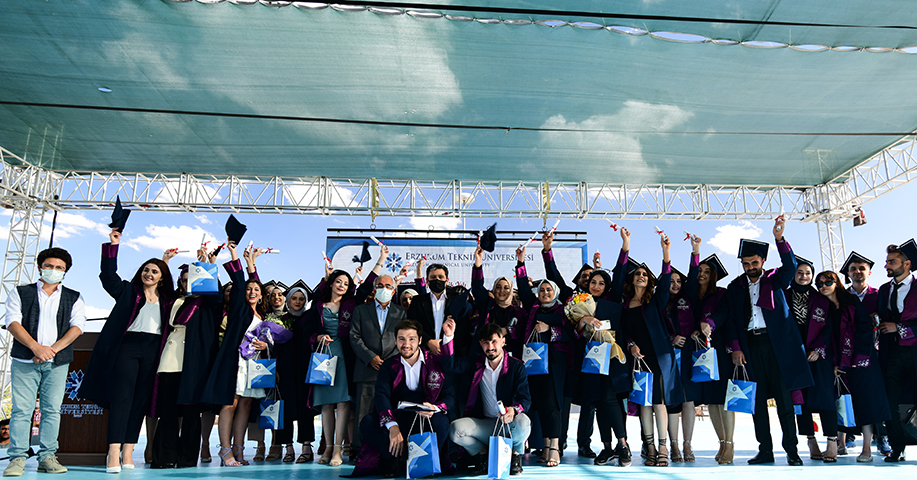 Covid-19 Pandemisi nedeniyle Erzurum Teknik Üniversitesi rektörlük meydanında açık havada düzenlenen törene; ETÜ Rektörü Prof. Dr. Bülent Çakmak, Rektör Yardımcıları Prof. Dr. Birol Soysal, Prof. Dr. İrfan Kaymaz, Prof. Dr. Murat Küçükuğurlu, Genel Sekreter Doç. Dr. Tuba Yetim ile lisans düzeyinde mezun olan öğrenciler, aileleri ve çok sayıda akademik, idari personel katıldı.