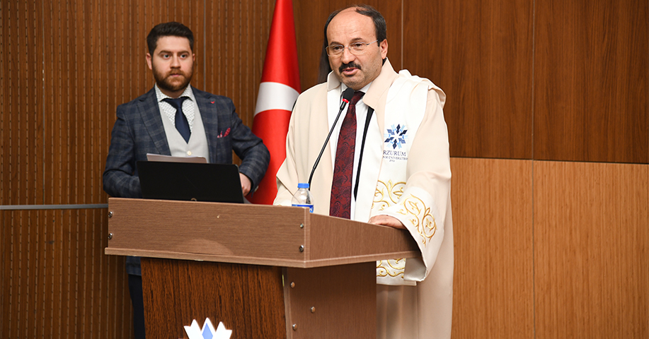 Programların açılış konuşmasını yapan Rektör Bülent Çakmak, ETÜ’nün bu yıl 8. dönem mezunlarını gururla uğurladığını belirterek: “4 yıllık zorlu bir maratonun sonunda üniversitemizden başarıyla mezun oluyorsunuz. Bu nedenle öncelikle sizleri kutluyorum. Bu başarıda sizin daima yanınızda olan, destek veren ailelerinizi, sevdiklerinizi ve emeklerinden dolayı hocalarımızı tebrik ediyorum. Her ayrılığın doğasında hüzün kaçınılmazdır. Ancak biliyoruz ki bir Erzurum Teknik Üniversitesi mezunu uzaklarda da olsa, aradan uzun yıllar da geçse artık bir ETÜ’lüdür ve üniversitesiyle ayrılmaz bir bütün haline gelmiştir. Çok kıymetli anne ve babalarımıza da şunu da gönül rahatlığıyla ifade etmek isterim ki, “Eğitim öğrenciye saygıyla başlar” sloganıyla başladığımız eğitim-öğretim sürecinde bize düşen öncelikli görev ise, ailesine, ülkesine ve tüm insanlığa faydalı olacak, donanımlı, ilkeli ve nitelikli bireyler yetiştirmek olmuştur. Sevgili Gençler, Mezun olduktan sonra mesleğinizi icra ederken, lütfen işinizi en iyi şekilde yapmanın gayreti içinde olun, insana insan olduğu için değer verin, konumunuzu-makamınızı nefsiniz için değil insanlığa hizmet etmek için vesile kılın, işinizin hakkını verin ve arayan değil aranan insanlar olun. Yani özetle değerli arkadaşlar, hayatın gayesi sadece iyi bir iş sahibi olmak, para kazanmak, kariyer yapmak, servet sahibi olmak değildir. Aynı zamanda değer sahibi olmak, ilkeli olmak ve insanlığa faydalı bireyler olmaktır. Hayat çok kısa ve zaman son derece kıymetli arkadaşlar; o halde başkasının hayatını yaşayarak harcayacak vaktiniz yok. Başkalarının sizin iç sesinizi bastırmasına izin vermeyin. En önemlisi, kalbinizi ve sezgilerinizi takip edin. Kendinize karşı dürüst olun ve ilkelerinizden taviz vermeyin. Sözlerimi bu duygu ve düşüncelerle tamamlarken sizleri mezuniyetinizden dolayı tekrar tebrik ediyor, bundan sonraki yaşamınızda yolunuzun ve bahtınızın açık olmasını temenni ediyorum” diye konuştu.