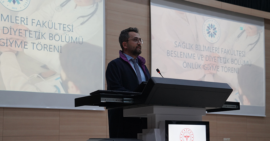 Beslenme ve Diyetetik, Fizyoterapi, Rehabilitasyon ve Hemşirelik bölümlerinde öğrenim gören 135 öğrencinin beyaz önlük giyme heyecanını yaşadığı programın açılış konuşmasını yapan Sağlık Bilimleri Fakültesi Dekan Yardımcısı Dr. Öğr. Üyesi İzzet Ülker, sağlık alanında eğitim gören gençlerin mesleklerine ilk adımlarını attıklarını ifade ederek, öğrencilere başarı dileklerinde bulundu.