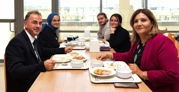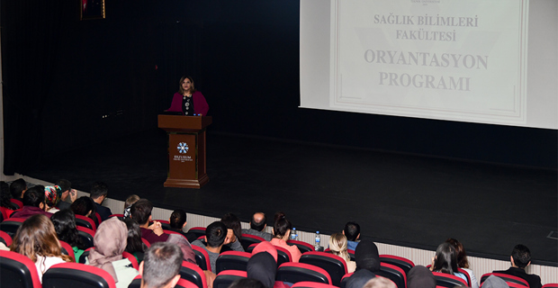An information meeting was held within the scope of orientation programs at Erzurum Technical University (ETU) Health Sciences Faculty. The meeting held in the Life Center Conference Hall was attended by Rector Prof. Dr. Bülent Çakmak, Dean of the Faculty of Health Sciences Prof. Dr. Elanur Yılmaz Karabulutlu, Head of Registrar's Office Hasan Bostancı, academicians, IT specialists and newly enrolled students in the Faculty of Health Sciences. Elanur Yılmaz Karabulutlu, Dean of the Faculty of Health Sciences, who came to the podium to make the opening speech of the meeting, stated that they are happy to start the new term and said, "We are making an intense effort to do the best for you, our esteemed students. You are starting a new education-teaching process. In the future, you will undertake very important duties as individuals with responsibilities to yourself, your family, your country and the world.I would like to take this opportunity to wish you all a successful 2022-2023 Academic Year". Rector Bülent Çakmak, who took the rostrum after Dean Karabulutlu, wished the new era to bring success, health and peace, said, "We are in an effort to offer you the best education with our academic and administrative staff. However, during your university life, you should not only be successful in your courses, but also be equipped in every sense when you graduate by taking advantage of every opportunity that will contribute to your personal development. With these feelings and thoughts, I wish you all success in your new education life." Finally, after the speeches, the students were informed about the social, sportive and cultural activities offered by the university, as well as the introduction of the "Blackboard Learn" system, which digitalizes and effectively organizes student-teacher interaction such as announcements, homework, discussion boards and blogs through distance education. At the end of the meeting, Rector Çakmak and the university administration went to the cafeteria with the students, chatted with the young people during the meal and listened to their expectations from the university and the new academic year.