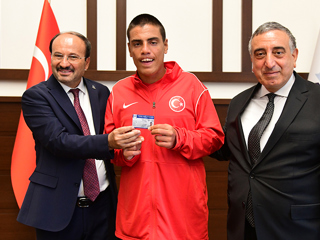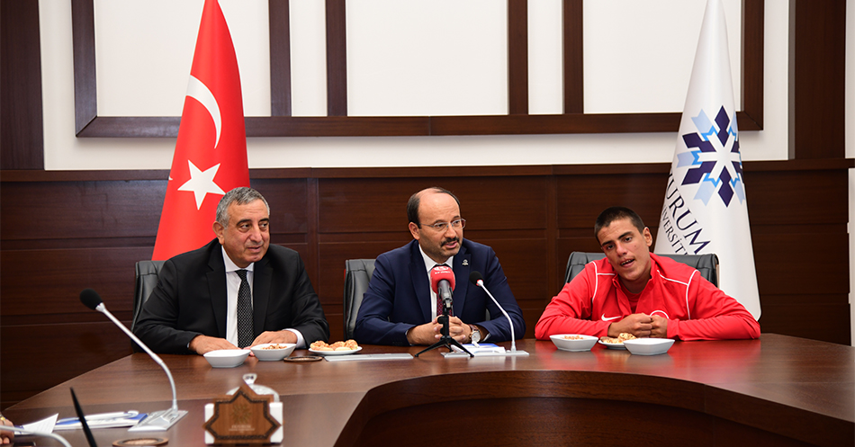 Rektör Çakmak’ın ardından konuşan Milli Sporcu Murat Bingül amacının özel sporcular kayak şampiyonalarında ülkemizi en iyi şekilde temsil etmek olduğunu ifade ederek: “Üniversite sınavını ve ETÜ Spor Bilimleri Fakültesi Yetenek Sınavını üst sıralarda tamamlayarak fakülteye girmeye hak kazandım. Sayın Rektörüme ve tüm hocalarımıza bana gösterdikleri yakın ilgiden dolayı çok teşekkür ediyorum. Ayrıca Erzurumlu olmaktan gurur duyuyorum. Benim lakabım Dadaş Murat. Tüm hemşerilerime de gönülden teşekkür ediyorum. Sayın Cumhurbaşkanımıza da biz engellilere gösterdiği sevgi ve tanıdığı yasal haklar nedeniyle ayrıca teşekkürlerimi sunuyorum. En büyük Türkiye” dedi.