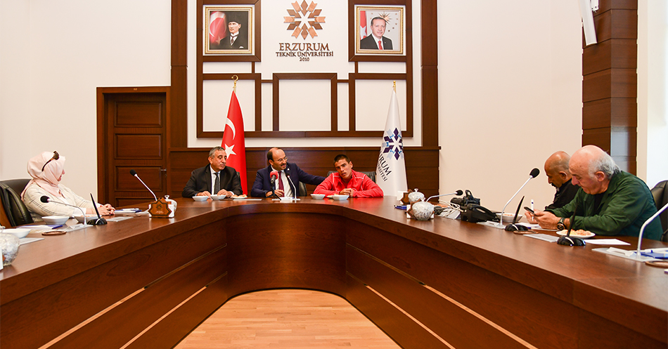 Toplantının açılış konuşmasını yapan Rektör Prof. Dr. Bülent Çakmak, Spor Bilimleri Fakültesinin bugüne kadar gerçekleştirmiş olduğu faaliyetler ve kazanmış olduğu ödüllerle ETÜ’nün yüz akı olduğunu dile getirerek: “Milli sporcumuz Murat’ı Spor Bilimleri Fakültemize kazandırmış olmanın mutluluğunu ve gururunu yaşıyoruz. Buna vesile olan başta kıymetli ailesine ve emeği gecen tüm hocalarımıza teşekkürlerimi sunuyorum. Benim Murat ile ilk tanışmam Palandöken Kayak Merkezinde gerçekleştirilen bir yarışma vesilesiyle oldu. Murat, düzenlenen müsabakada altın madalya kazanarak Türkiye Şampiyonu olmuştu ve biz de madalyasını kendisine takdim etmiştik. Bu açıdan Murat, gerek kişiliğiyle gerekse de sporda elde etmiş olduğu başarılarla övgüyü fazlasıyla hak ediyor. Yapmış olduğumuz lise ziyaretlerinde de Murat’ın başarılarından sık sık bahsediyor ve örnek olarak gösteriyorum. İnşallah önümüzdeki süreçte Spor Bilimleri Fakültesindeki hocalarımızla birlikte Murat çıtayı daha da üst seviyelere taşıyarak hem kendi kariyerini geliştirecek hem de üniversitemizi ve ülkemizi kış sporları alanında en güzel şekilde temsil edecek. Bu duygu ve düşüncülerle kedisine tekrardan hoş geldin diyorum” şeklinde konuştu.