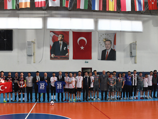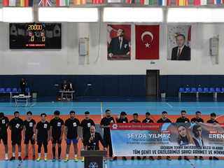 Saygı duruşu ve İstiklal Marşı’nın okunmasıyla başlayan açılış programında konuşan Rektör Çakmak, organizasyonun oldukça özel bir anlam taşıdığını vurgulayarak: “İki şehidimiz adına düzenlediğimiz bu organizasyon ile aslında canını vatanımız için feda eden tüm şehitlerimizi ve Filistin başta olmak üzere mazlum coğrafyalarda uğradığı zulüm sonucunda hayatını kaybeden tüm şehitlerimizi rahmetle anıyoruz. Bu açıdan turnuvanın özel bir anlam taşıdığı kanaatindeyim. Üniversitemizin sahip olduğu bu tür fiziki imkanların sadece eğitim öğretim amacıyla değil böylesine anlamlı organizasyonlar için de kullanılıyor olması bizler için oldukça kıymetlidir. Bu vesileyle organizasyonun gerçekleştirilmesinde emeği geçen Eğitim ve Kültür Kulübüne ve Koordinatör Hocamız Arş. Gör. Furkan Öget’e teşekkür ediyorum” diye konuştu.