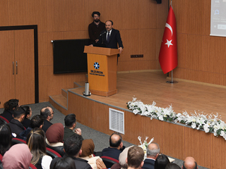 Dekan Aydın’ın ardından kürsüye çıkan Rektör Çakmak, havacılık ve uzay alanlarının bütün ülkelerin hakimiyet kurmaya çalıştığı sahaların başında geldiğine dikkat çekerek:” Ülkemizde gerek havacılık ve uzay mühendisliği alanında gerekse de sivil havacılık alanında kurumlarımız ihtiyaç duyulan kalifiye insan kaynağı yetiştiriyor. Biz de ETÜ olarak havacılık ve uzay mühendisliği bölümümüzü aktif ettik ve bu yıldan itibaren öğrenci almaya başladık. Bir teknik üniversite olarak havacılık ve uzay mühendisliğinin diğer mühendislik disiplinlerinin dışında kalması düşünülemez. Bölümümüzde çok nitelikli hocalarımız var ve yeri geldiği zaman elektrik elektronik, makine ve bilgisayar mühendisliği bölümlerimizdeki hocalarımız da eğitim faaliyetlerinde gereken desteği sağlayacaklar. Ayrıca öğrencilerimize en iyi eğitimi sunabilmek için ülkemizden ve dünyadan önemli bilim insanlarını öğrencilerimizle buluşturacağız. Çünkü bizim amacımız öğrencilerimizin sadece ulusal düzeyde değil aynı zamanda uluslararası düzeyde en nitelikli şekilde mezun olmalarını sağlamak. Bu noktada ülkemizin havacılık alanında önde gelen firmalarıyla protokollerimiz de bulunuyor. İlerleyen yıllarda sizler için bu firmalara teknik geziler düzenleyerek sahada yapılan çalışmaları yerinde görme imkanı sağlayacağız. Sizlerde bu süreçte çok çalışacaksınız ve sunulan imkanlardan en iyi şekilde istifade edeceksiniz” ifadelerini kullandı.