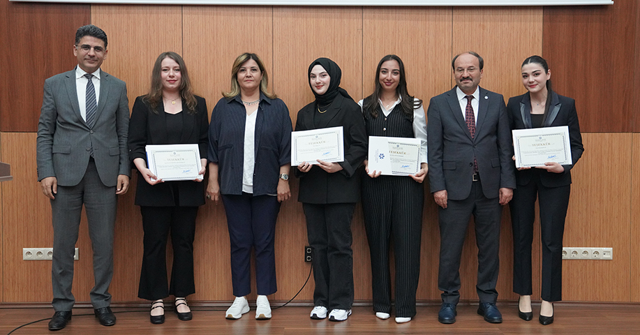 Rektör Çakmak’ın konuşmasın ardından devam eden tören, öğrencilerin ve danışmanların teşekkür belgelerini alması ve hatıra fotoğrafı çekilmesiyle sona erdi.
