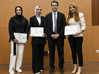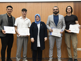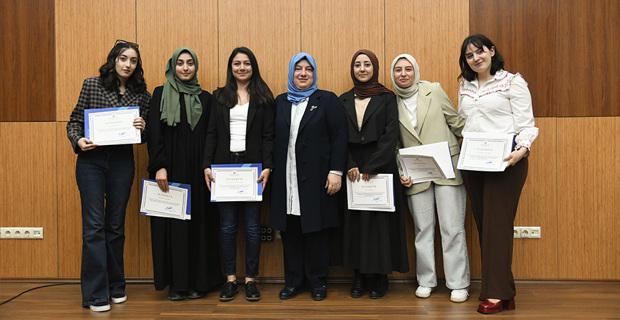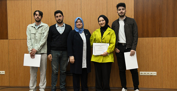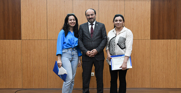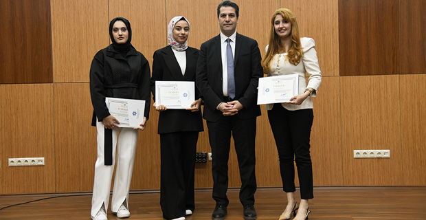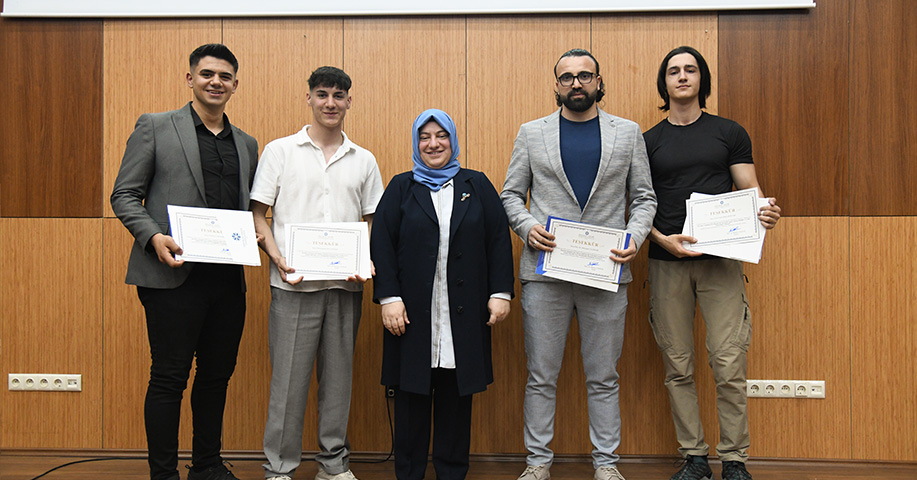 The program concluded with Rector Cakmak and Vice-Rectors presenting certificates of appreciation to the students and their advisors, followed by a group photo.