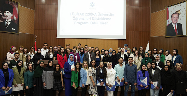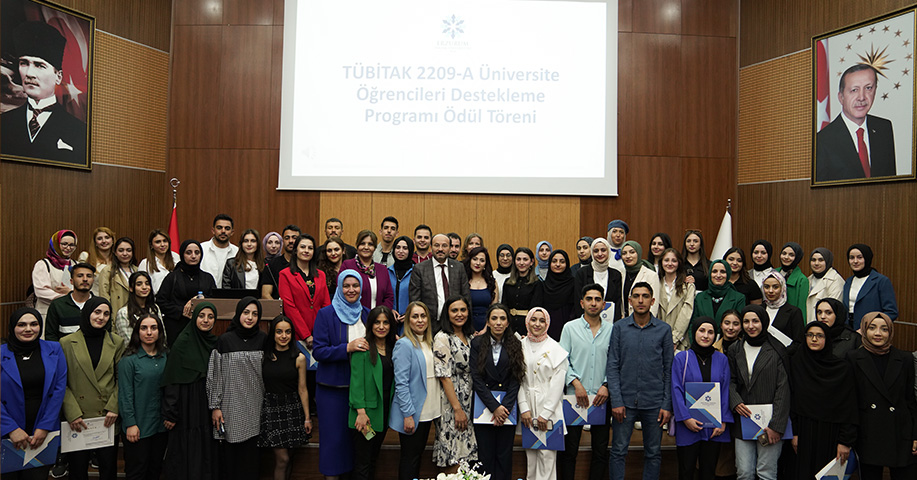An award ceremony was organized at Erzurum Technical University (ETU) for project teams that qualified for support under the "2209-A University Students Support Program" of the Scientific and Technological Research Council of Turkey (TUBITAK) in 2023.