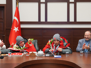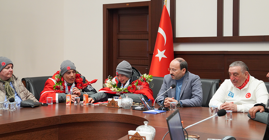Karşılamanın ardından Milli Sporcuları, teknik heyeti ve sporcuların ailesini ETÜ’de ağırlayan Rektör Çakmak, büyük bir gurur yaşadıklarını ifade ederek: “Sporcularımızın üniversitemizde öğrenci olmaları bizim için ayrı bir gurur vesilesi. Öğrencilerimiz geçtiğimiz yıl da dünya şampiyonasından madalya ile dönmüştü. Bu yıl da bizi şaşırtmadılar ve kazandıkları madalyalarla ülkemizi, şehrimizi ve üniversitemizi gururlandırdılar. Tabii her öğrencimizin kazandığı madalya bizler için son derece önemli. Ancak çok zor şartlarda mücadele eden Zeynep ve Murat’ın elde ettikleri başarının ayrı bir anlamı var. Bizler bu başarının arkasında ne emekler olduğunu çok iyi biliyoruz. Bu vesileyle başta sporcularımızın kendileri olmak üzere ailesini ve antrenörlerini yürekten tebrik ediyor, başarılarının devamını diliyorum” diye konuştu.