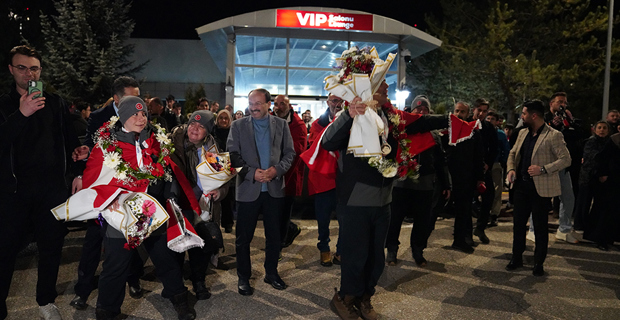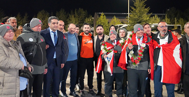 A welcoming ceremony was held at the airport for the twin brothers who returned to Erzurum from France with double medals, and ETU Rector Prof. Dr. Bulent Cakmak, as well as many academics and students were present in the area.