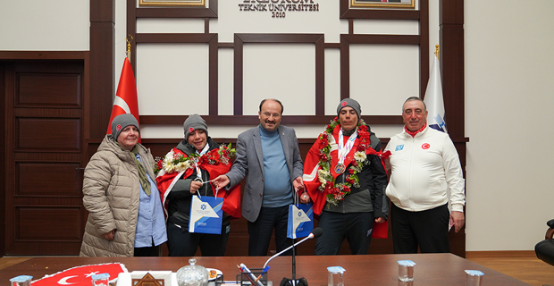After the welcome, Rector Cakmak, who welcomed the National Athletes, the technical staff and the families of the athletes at ETU, expressed that they were very proud and said: “It is a separate source of pride for us that our athletes are students at our university. Our students returned from the world championship with medals last year. They did not surprise us this year either and made our country, city and university proud with the medals they won. Of course, the medals that each of our students win are extremely important to us. However, the success achieved by Zeynep and Murat, who fought under very difficult conditions, has a special meaning. We know very well what efforts are behind this success. On this occasion, I heartily congratulate our athletes, their families and coaches, and wish them continued success.”