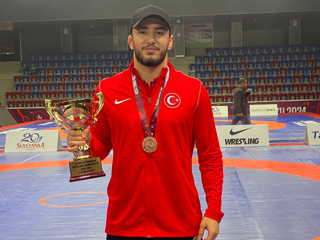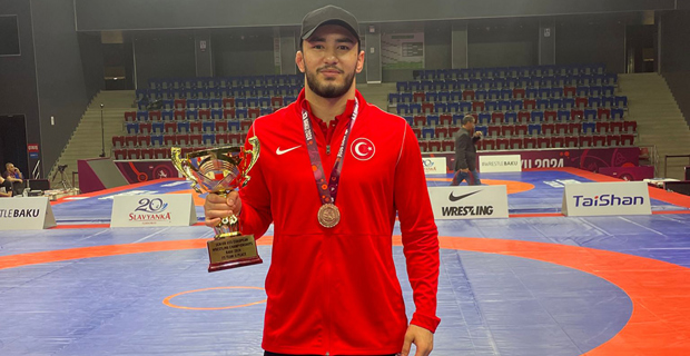 Emre Ciftci, a student at Erzurum Technical University's Faculty of Sports Sciences, won a bronze medal at the U23 European Wrestling Championship in Baku, Azerbaijan. He defeated his opponent Ilya Khamtsou 6-4 in the 86kg freestyle category, securing the bronze. Azerbaijan became European Champions with 137 points, while Turkey finished as runners-up with 119 points in the team standings.