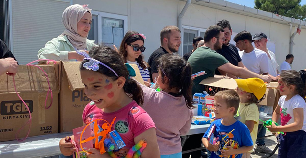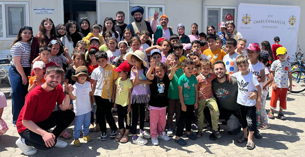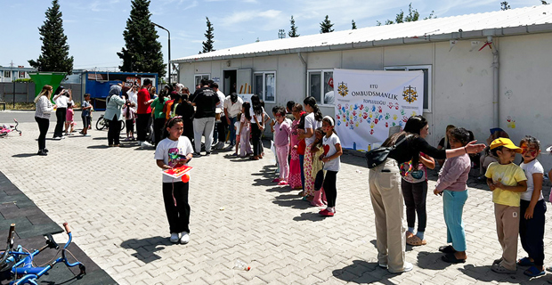 The ETU Ombudsman Society and a group of volunteer students went to the Baykar Container City in Dulkadiroglu district of Kahramanmarash to support the earthquake-affected children. They organized various activities to make the children happy.