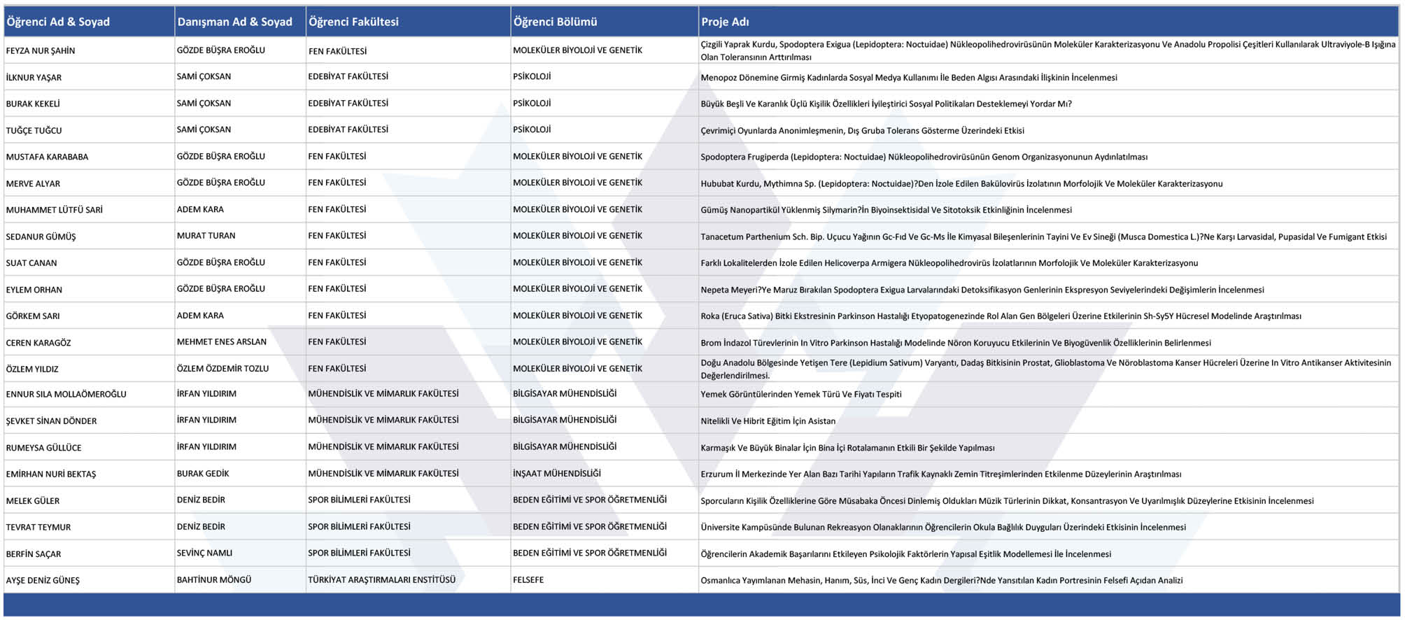 Üniversitelerde öğrenim görmekte olan lisans öğrencilerini akademik danışmanlar eşliğinde araştırma yapmaya teşvik etmek ve proje hazırlama kültürü kazandırmak amacıyla TÜBİTAK Üniversite Öğrencileri Araştırma Projeleri Destekleme Programı 2022 Yılının ilk dönemi kapsamında yapılan başvuru sonuçlarına göre Erzurum Teknik Üniversitesi’nden (ETÜ) 21 öğrenci burs almaya hak kazandı.