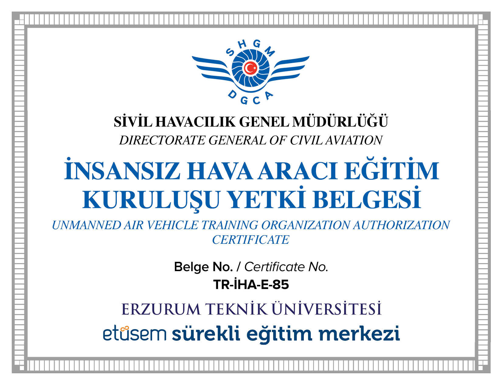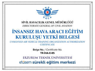 Proje ile İnsansız Hava Aracı (Drone) Pilotluğu için ETÜ personelinden oluşan 20 kişilik ekibe önce teorik ve uygulamalı İHA1 Eğitimi, sonrasında ise Eğiticinin Eğitimi gerçekleştirildi. Daha sonra yetkili eğitim kuruluşu olmak için gerekli koşullar sağlanarak Sivil Havacılık Genel Müdürlüğü’ne (SHGM) başvuru yapıldı. Yapılan değerlendirmelerden sonra 18 Ekim 2021 tarihi itibariyle ETÜSEM, İHA0 ve İHA1 programları için Türkiye genelinde yetkilendirilmiş toplam 57 kuruluştan biri olarak büyük bir başarıya imza attı. Aynı zamanda Doğu Anadolu Bölgesi’nde bu yetkiye sahip 3, Türkiye genelinde ise 34 üniversiteden biri oldu.