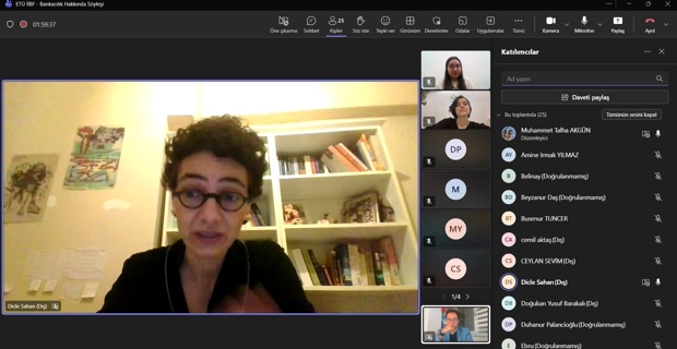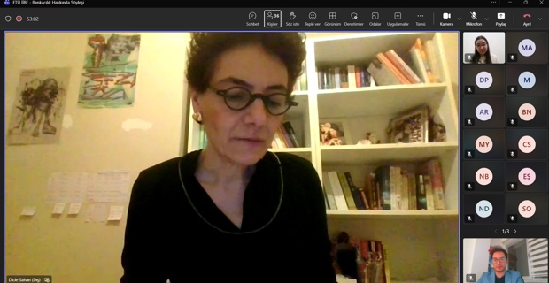 Söyleşinin davetli konuşmacısı, DenizBank Sorunlu Krediler Bölüm Müdürü Dicle Şahan oldu. Etkinlik kapsamında bankaların organizasyon yapısı, bankacılık hizmetleri, kariyer planlaması ve insan kaynakları uygulamaları hakkında katılımcı öğrencilere kapsamlı bilgiler aktarıldı.