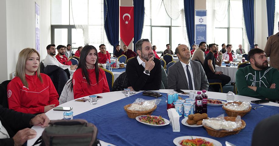 Programın açılışında konuşan Prof. Dr. Çakmak, ETÜ’nün elde ettiği başarının çok yönlü bir emeğin sonucu olduğunu vurgulayarak: “Bugün burada, üniversitemiz için gurur dolu bir anı paylaşmak üzere bir araya gelmiş bulunuyoruz. 2024–2025 sezonunda 182 üniversite arasında toplam madalya sıralamasında Türkiye şampiyonu olmak, yalnızca bir spor başarısı değil; aynı zamanda kararlılığın, disiplinin, azmin ve kurumsal vizyonumuzun güçlü bir göstergesidir. Bu başarı, Erzurum Teknik Üniversitesi ailesinin birlikte ortaya koyduğu büyük emeğin, inancın ve yüksek hedeflere yürüyen bir iradenin sonucudur. Elde edilen şampiyonluk, sporcularımızın sahada verdiği mücadelenin, antrenörlerimizin özverisinin, akademisyenlerimizin rehberliğinin ve idari kadromuzun koordineli çalışmasının somut bir yansımasıdır. Her bir öğrencimizi ve bu sürece katkı sunan tüm çalışanlarımızı gönülden tebrik ediyorum” ifadelerini kullandı.