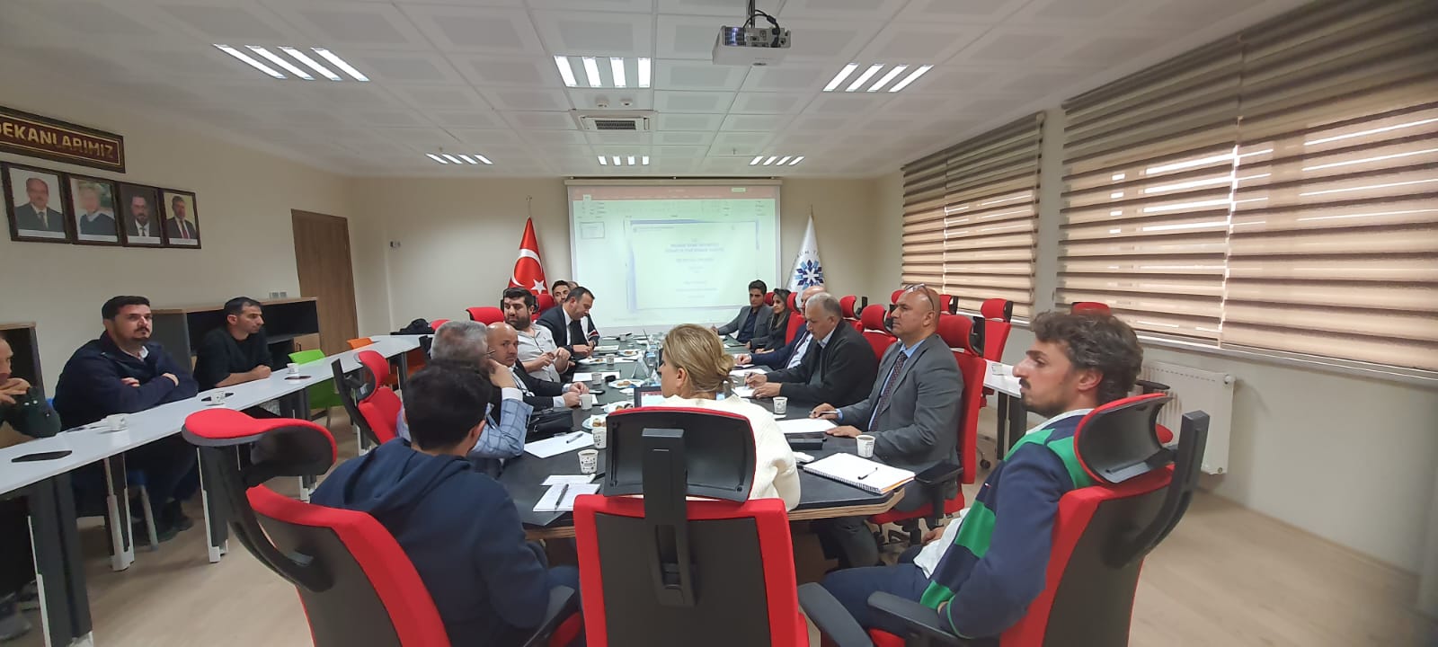2023-2024 Eğitim-Öğretim Yılı Dış Paydaş Toplantısı, 18.10.2023 tarihinde 15.00-18.00 saatleri arasında Fakültemiz Dekanlık Toplantı Salonunda Sayın Dr. Öğr. Üyesi Halil PEÇE'nin koordinatörlüğünde Dekan Yardımcımız Sayın Doç. Dr. Nurşen AYDIN, İşletme Bölüm Başkanımız Sayın Prof. Dr. Şakir DIZMAN ve diğer öğretim elemanlarımızın katılımlarıyla gerçekleştirilmiştir.