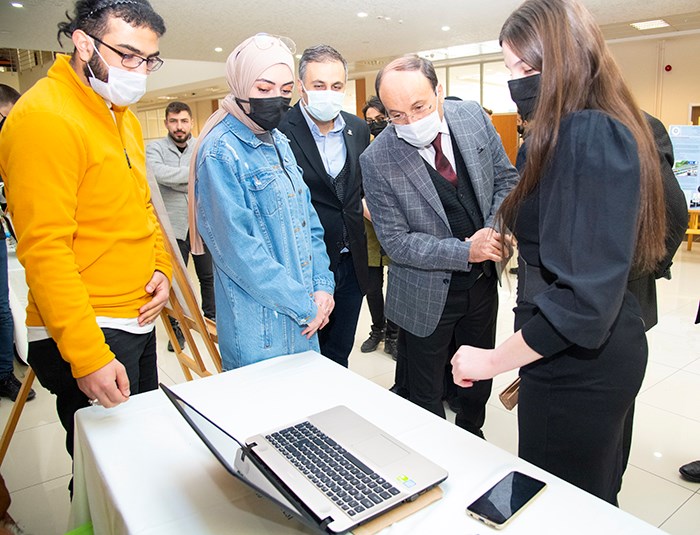 Serginin açılışına katılan ETÜ Rektörü Prof. Dr. Bülent Çakmak, Rektör Yardımcısı Prof. Dr. İrfan Kaymaz ve Mühendislik ve Mimarlık Fakültesi Dekanı Ali Fatih Yetim, hazırlanan posterleri inceleyerek yapılan çalışmalar hakkında öğrencilerden bilgi aldı.