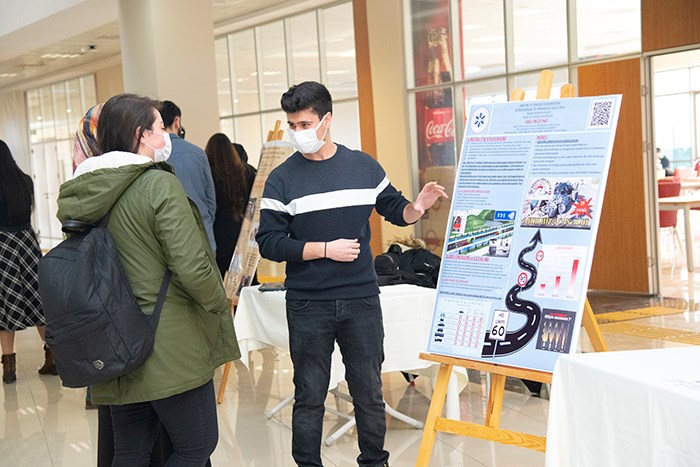 Mühendislik ve Mimarlık Fakültesi Fuaye Alanında düzenlenen sergide öğrenciler tarafından trafikte yol güvenliği, hız ölçümü, cep telefonu ve çocuk koltuğu kullanımı gibi konular üzerine 1 dönem boyunca yapılan araştırmalar sonucunda elde edilen bulgular hazırlanan posterlerle sergilendi.