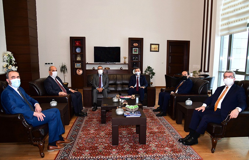 Gazi University Rector Prof. Dr. Musa Yıldız and the accompanying delegation visited the Rector of Erzurum Technical University (ETU) Prof. Dr.Bülent Çakmak in his Office.
