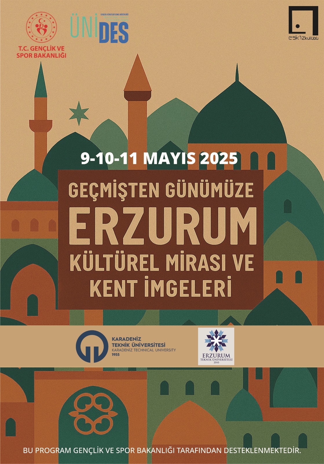 Erzurum Teknik Üniversitesi, Karadeniz Teknik Üniversitesi ve Atatürk Üniversitesi Mimarlık Bölümleri hocaları ve öğrencileri ortaklığı ile ETÜ Mimarlık Bölümünün ev sahipliğinde “GEÇMİŞTEN GÜNÜMÜZE ERZURUM KÜLTÜREL MİRASI VE KENT İMGELERİ ATÖLYE PROGRAMI” düzenlenecektir. 9-11 Mayıs 2025 tarihinde gerçekleştirilecek olan Program, Erzurum kentinin kültürel mirasının kente dışarıdan gelen misafirler ve kentte yaşayanlar tarafından “Erzurum’un Kültürel Mirasının” algılanmasının ve bu zenginliğin herkesçe görünür kılınması bağlamında yapılacak bir farklı üniversitelerin mimarlık öğrencilerinin katılacağı bir atölye çalışmasıdır.