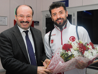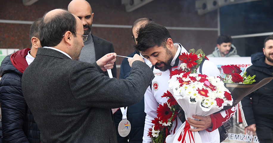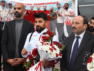 The successful athlete thanked Rector Çakmak and the delegation who came to welcome him, stating that he will continue training without a break: "Our goal was to defend our title and return to our country with a gold medal, but it didn't happen. This is part of the nature of sports. However, this motivates me more. I will work harder for next year and bring the gold medal back to our country where it belongs. Now we will focus on the tournaments and championships on our calendar and work with all our strength to return with the best result. In this process, I would like to thank once again our Erzurum Metropolitan Municipality President Mehmet Sekmen, our Club President Ahmet Dal, our Governor Mustafa Çiftçi, our Rector Prof. Dr. Bülent Çakmak, our Provincial Director of Youth and Sports Birdal Öztürk, our Director of Sports Services Ahmet Çelebi and everyone who stood by us with their prayers."