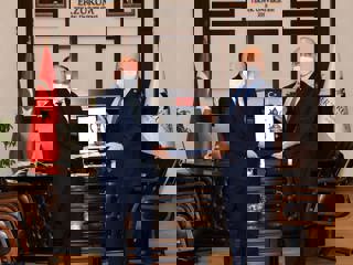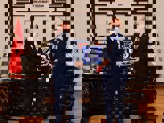 Pandemi dönemi ve eğitim-öğretime etkisi gibi hususlarda konuşulmasının ardından, Prof. Dr. Halil İbrahim ZEYBEK, Rektörümüz Prof. Dr. Bülent ÇAKMAK'a hediyelerini sundu ve Rektörümüze başarı temennilerinde bulundu.