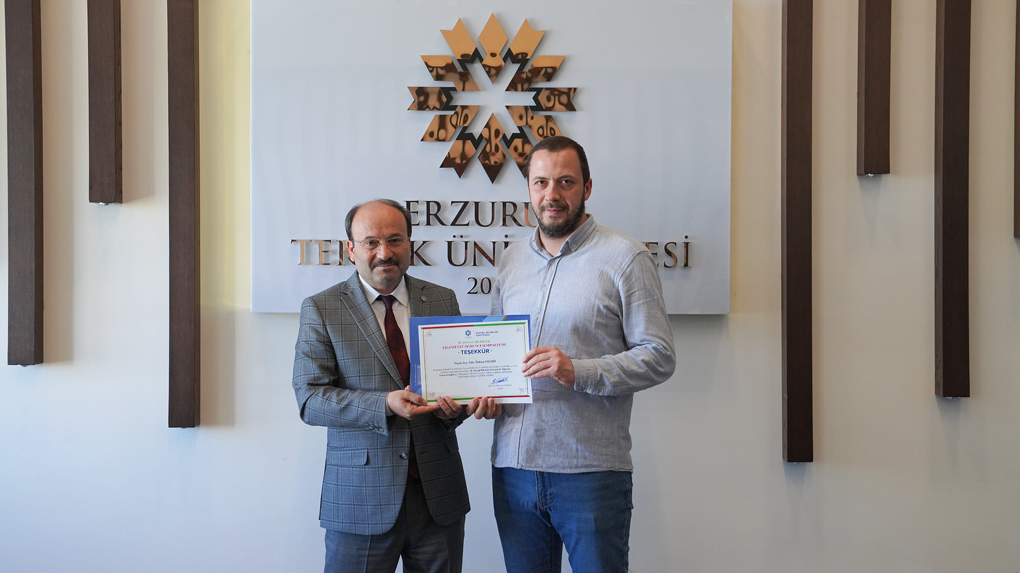 Rektörümüz Prof. Dr. Bülent Çakmak, 15-16 Mayıs 2025 tarihleri arasında Enstitümüz tarafından düzenlenen II.Sosyal Bilimler Lisansüstü Öğrenci Sempozyumu düzenleme kurulu üyelerine teşekkür belgesi takdim etmiştir.