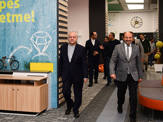 Expressing his satisfaction with the visit, Rector Çakmak gave his guest information about the physical structure of the campus, and then took him to ETU's innovation centers, High Technology Application and Research Center, MUCITPARK Science and Idea Workshop, and Kristal Entrepreneurship Center and shared information about the studies carried out.