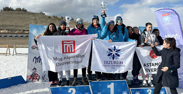 In the women's category, Mine Kılıç, Neslişah Sarıaltun, Betül Demir and Emina Sıdaruk left Atatürk University behind and became the Women's Ski Biathlon Turkey Champions and brought the first place cup to ETÜ.