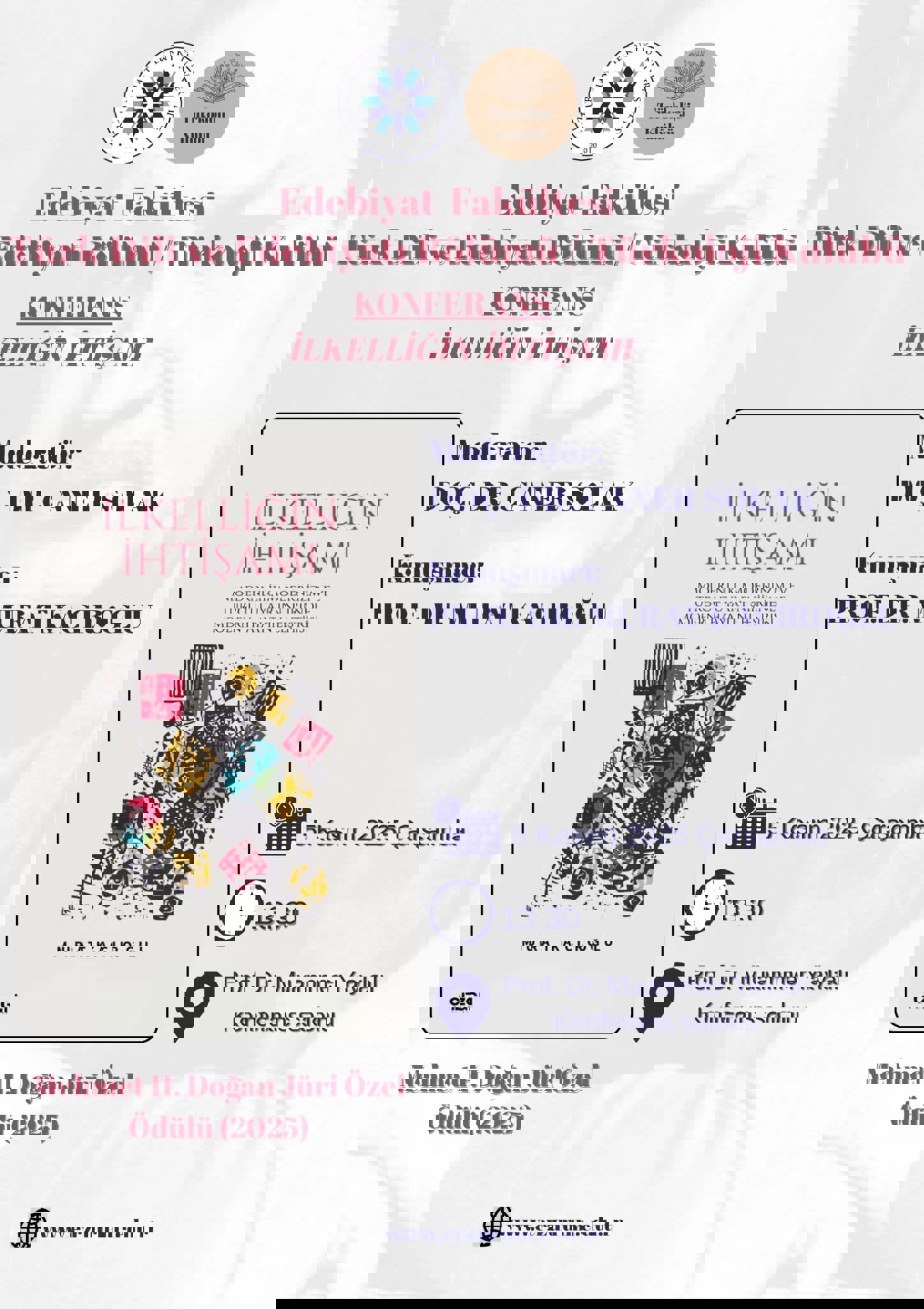 Doç. Dr. Caner SOLAK moderatörlüğündeki konferansta Prof. Dr. Murat KACIROĞLU'nun "Mehmet H. Doğan Jüri Özel Ödülü" (2023) almış olan "İlkelliğin İhtişamı" adlı eseri üzerine konuşulacaktır.