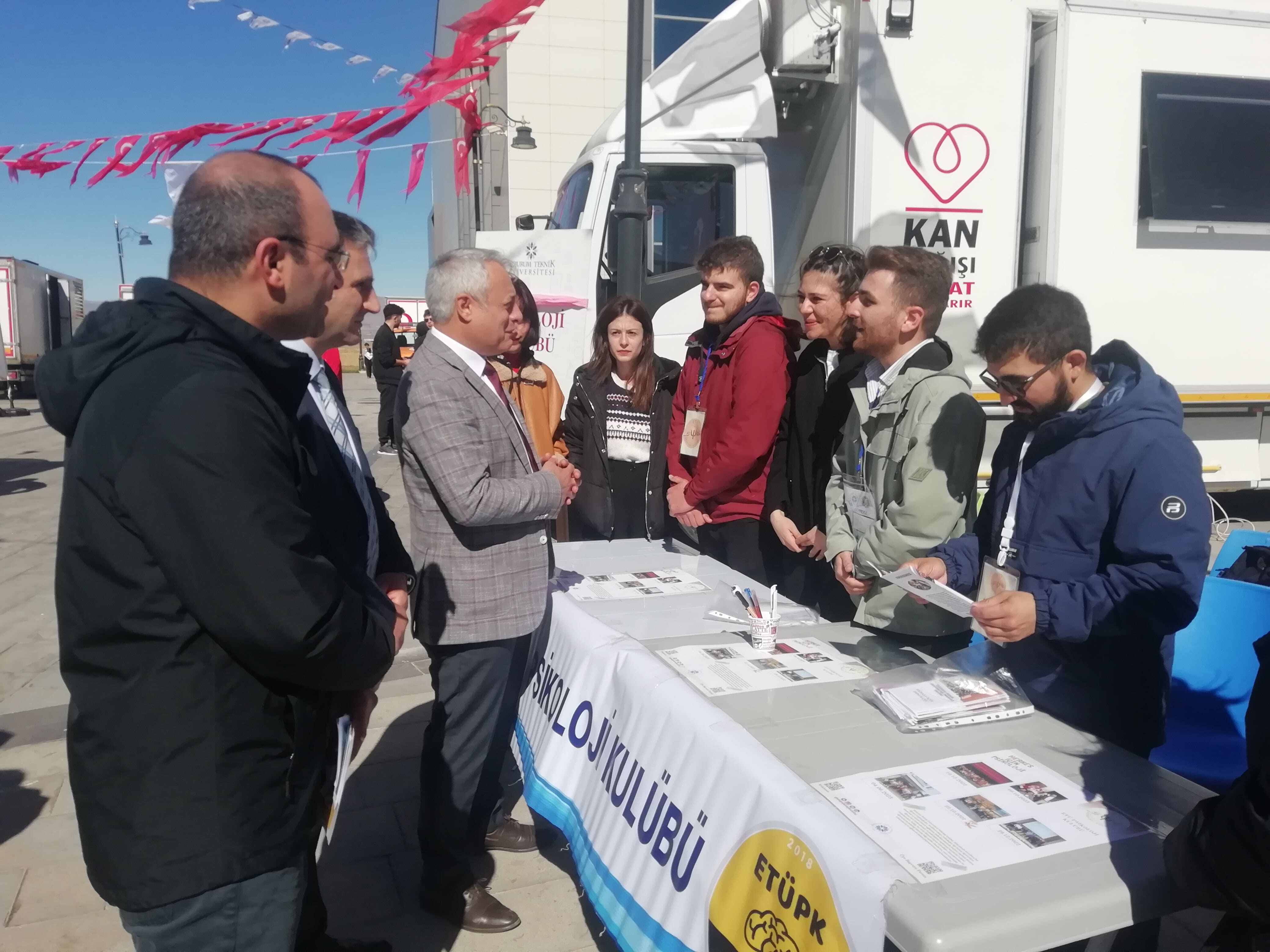 Üniversitemiz Sağlık, Kültür ve Spor Dairesi Başkanlığı tarafından organize edilen kulüp tanıtım etkinliğinde Fakültemiz öğrencileri tarafından kurulan kulüp stantlarını dekanımız, dekan yardımcılarımız ve bölüm başkanı hocalarımız ziyaret ettiler.