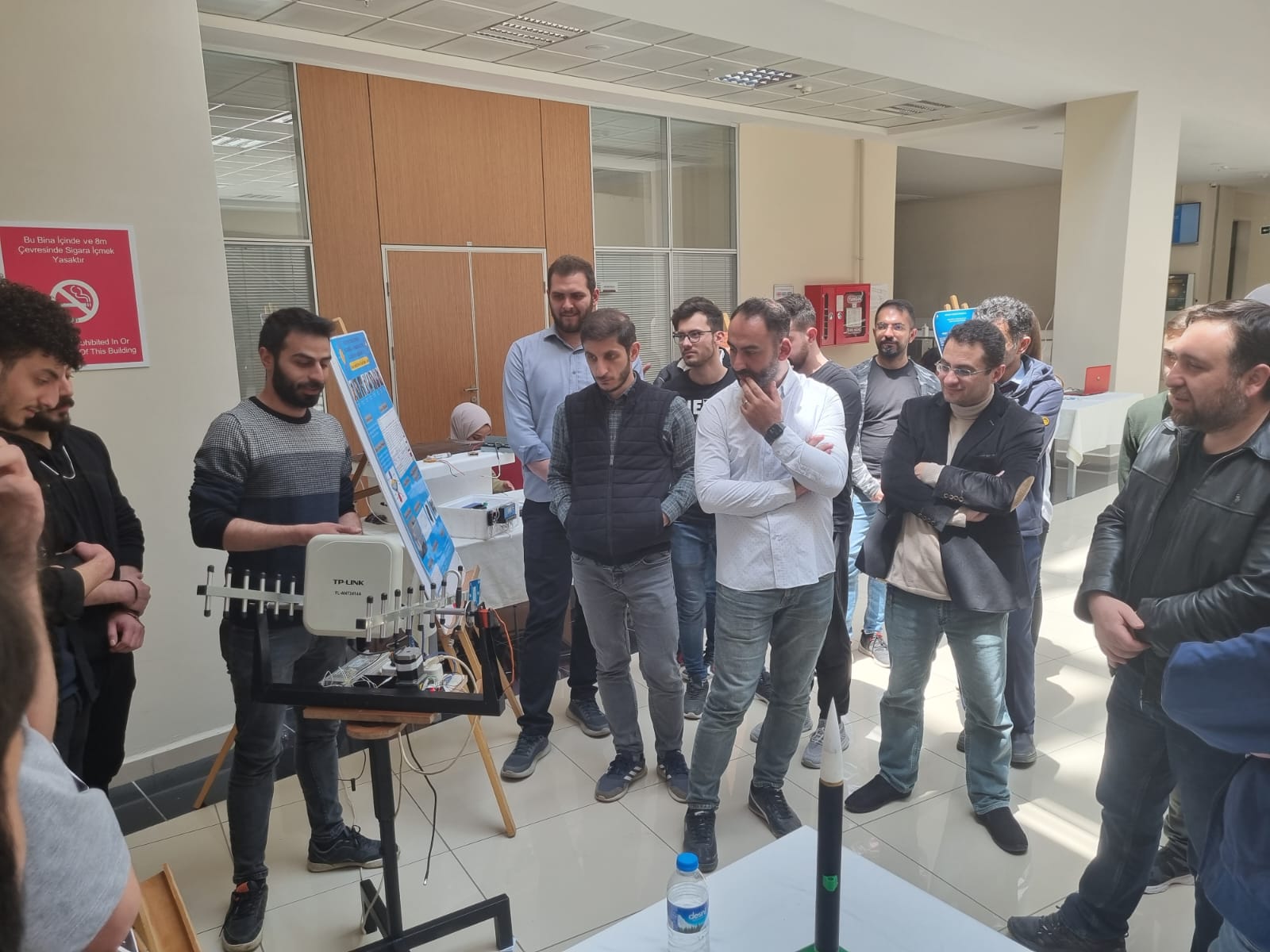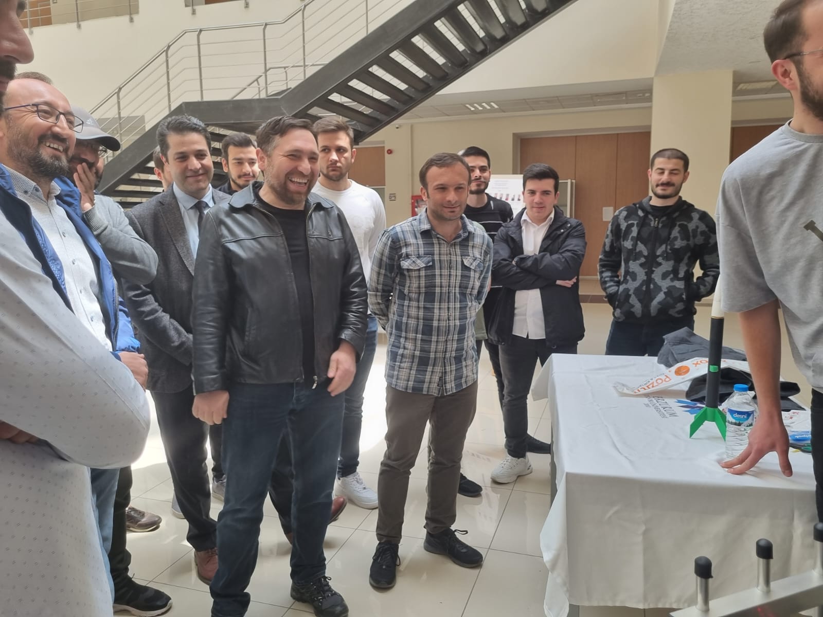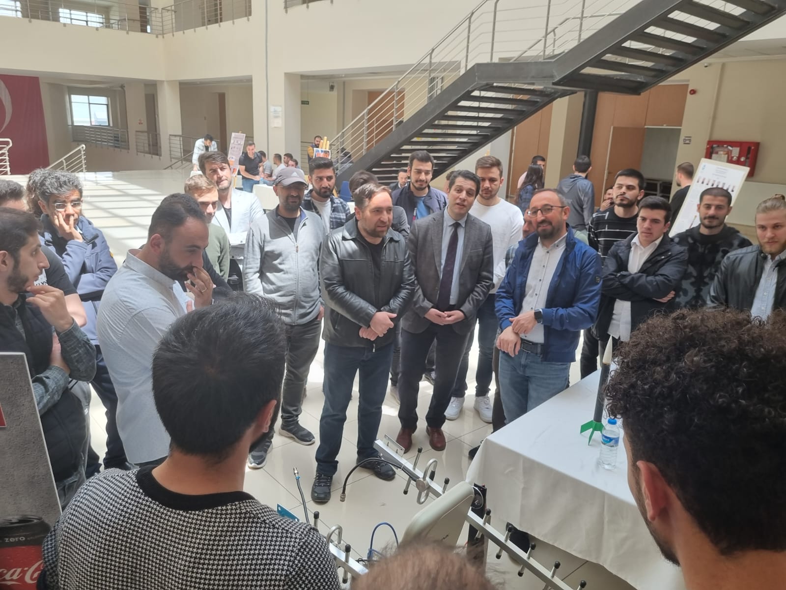 Tasarımların sunulduğu stantları ziyaret eden Mühendislik ve Mimarlık Fakültesi Dekanı Prof. Dr. Ali Fatih Yetim ve Makine Mühendisliği bölümü öğretim üyeleri öğrencilerimizi yaptıkları projelerden ötürü tebrik ettiler.