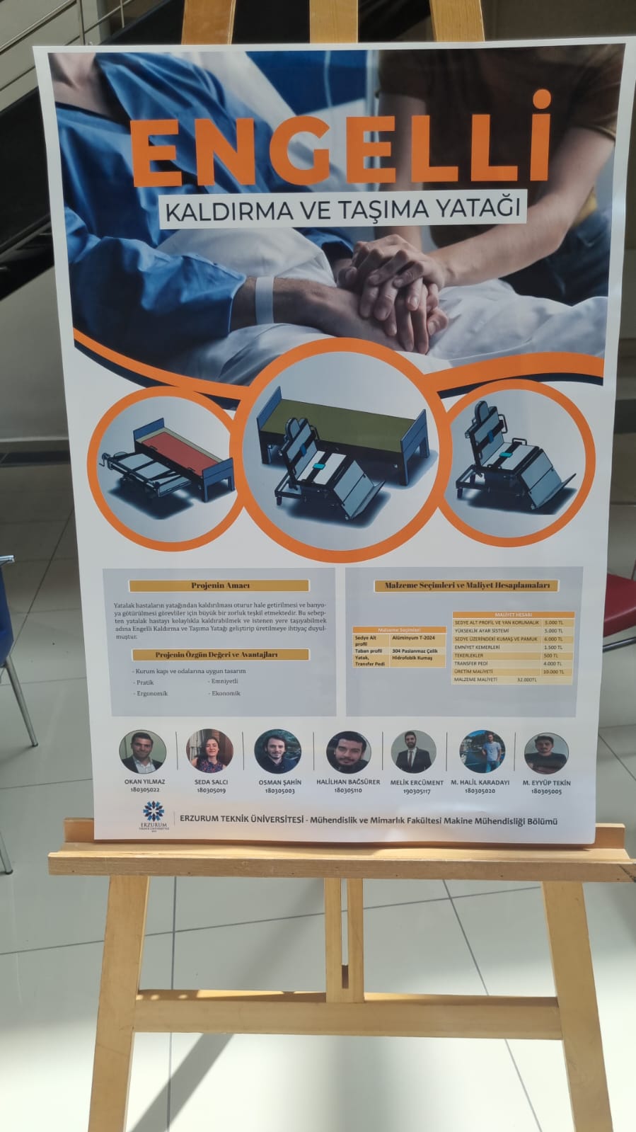 Makine tasarım dersinde son sınıf öğrenci gruplarının güncel sorunlar üzerine geliştirdikleri özgün projeler öğrencilerin ve hocalarının beğenisine sunuldu. Engelli bireyleri mümkün olduğu kadar az rahatsız ederek hareket ettirmeye yönelik tasarlanan "Engelli kaldırma ve taşıma yatağı" projesi oldukça dikkat çekti. Geliştirilen projeler ilgili kurumlarla beraber bakanlıklara proje önerisi olarak sunuldu."