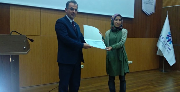 At the end of the event, the Dean Prof. Dr. Umit INCEKARA presented a certificate of appreciation to Res. Asst. Ayse USTUN for his presentation and contributions.