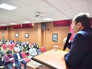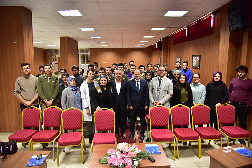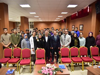 Within the scope of the Youth Meeting program held in the conference hall of the school with the theme of "a Lesson with the Professor Rector" among Ministry of National Education, University and Nevzat Karabağ Anatolian High School, the Rector. Prof. Dr. Bülent ÇAKMAK chatting with students conveyed his thoughts about success and career planning to high school students.